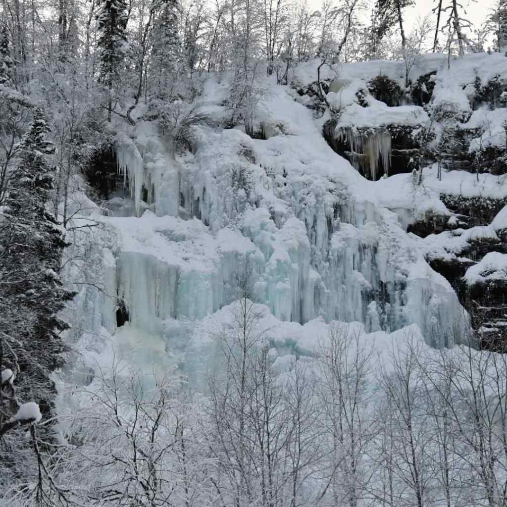 Retkellä pääsemme tutustumaan kolmeen upeimpaan jääputoukseen Jaska Jokuseen, Ruskeaan virtaan ja Mammuttiin. Avotulen loimutessa nautimme pientä purtavaa ja lämmintä juotavaa.