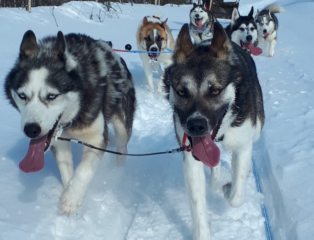 Vauhdikkaan seikkailun jälkeen on aika kiittää koiria, rapsutella, pussailla ja ottaa yhteiskuvia näiden upeiden arktisten ystävien kanssa.